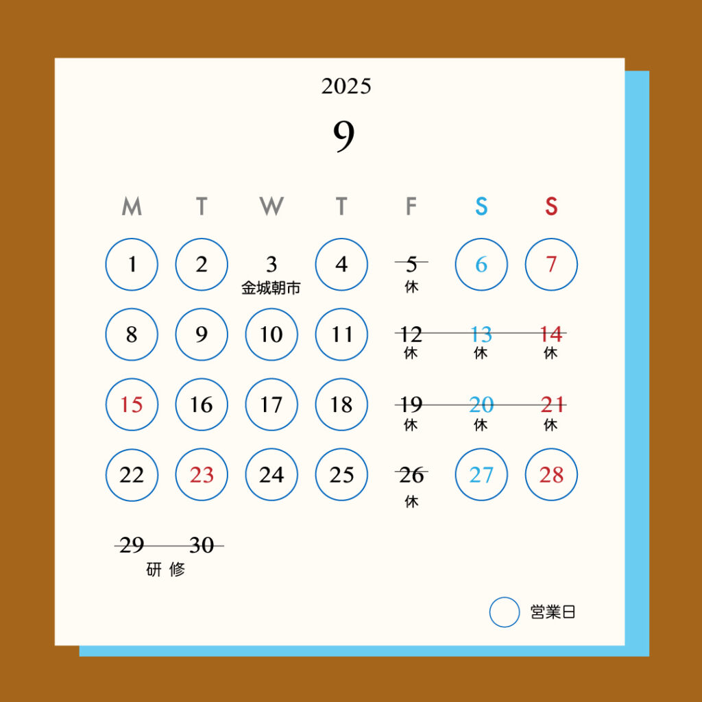 第2週と第3週の週末に連休をいただく関係で、最終週はご予約が混み合いそうです。20日(土)、22日(月)は予定が確定していないため後日営業のお知らせをいたします。