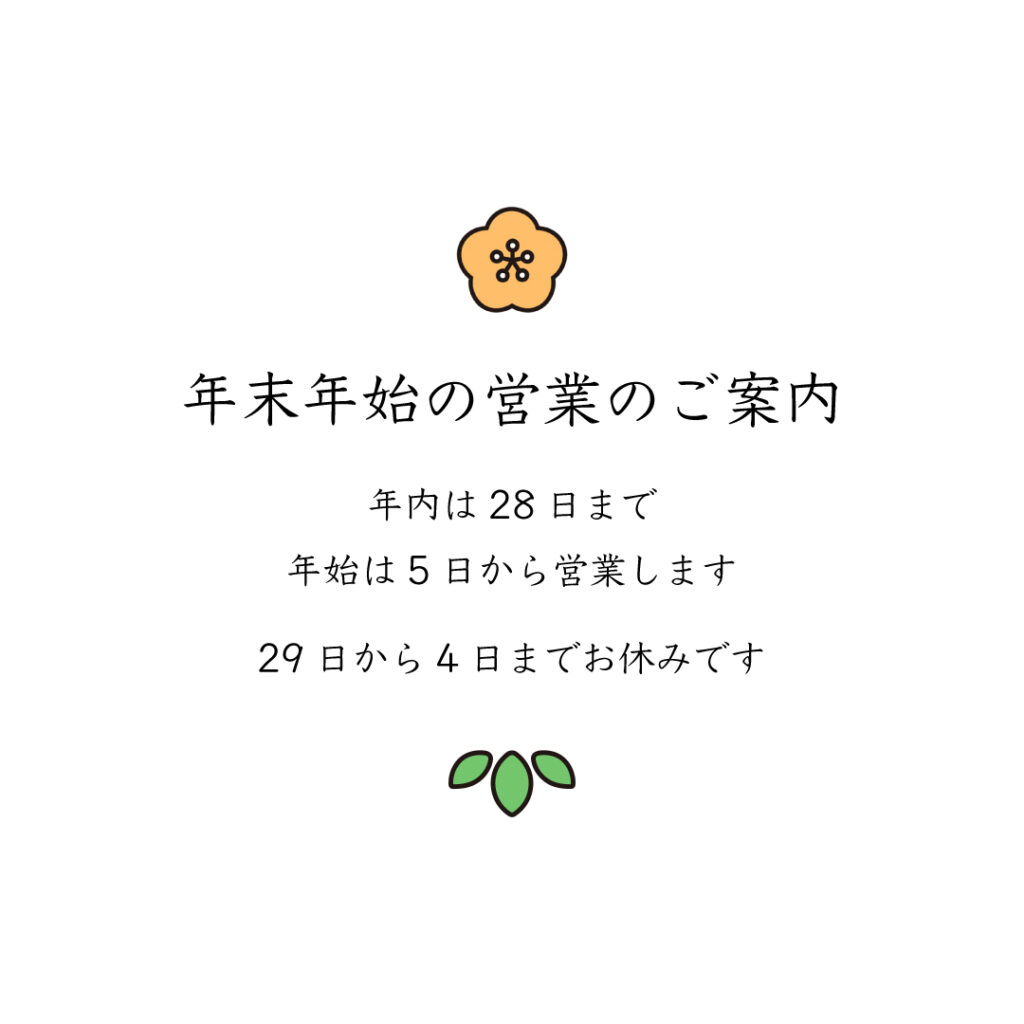 年末年始休業期間:12月29日(月)〜1月4日(日)